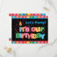 Este convite de aniversário excelente para gêmeos é brilhante e colorido e não deixará de chamar a atenção de todos. Frente tem letras coloridas que dizem que É NOSSO ANIVERSÁRIO. Texto frontal e traseiro personalizável. Borda listrada colorida, na frente e no verso. PinkInkArt original!