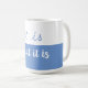 "É o que é" caneca de café para nos lembrar que há algumas coisas que não podemos mudar.