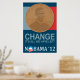 Obama trabalhou numa plataforma de "Mudança" em 2008. Hora de votar Obama fora do cargo, ou então estaremos lutando para manter até nossos últimos centavos. Imagem de poster estilizada apresentando o retrato de Obama em um centavo com as palavras "MUDAR É tudo o que nos resta" e "NObama '12".
