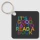 É um bom dia para ler um livro, texto colorido. Feliz chaveiro colorido para aqueles que amam ler!