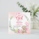 É um modelo de convite para chás de fraldas de arco floral para ursos de peluche. Urso de pelúcia bonito com fita cor-de-rosa e balões cor-de-rosa para chá de fraldas feminino.