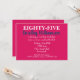É uma festa surpresa de oitenta e cinco festas de aniversário. Faça um convite especial de aniversário para seu favorito na colina de cinquenta anos. Comece a comemorar com este convite ousado e divertido. Este é um belo, ousado e moderno convite de aniversário rosa-quente com tipografia branca de serifa. É limpo, nítido e convidativo. Este convite pode ser personalizado para qualquer pessoa e qualquer idade. É claro que faz uma impressão com a sua lista de convidados. POR FAVOR, CONTATE-ME SE PRECISAR DE AJUDA COM ESTE MODELO! Olá! Obrigados para visitar Designs de Donna Gotlib e ver tudo o que temos para oferecer. Eu sei que você tem escolhas quando está comprando e gostaria que você soubesse que eu aprecio seu negócio.Confira alguns outros itens que eu criei e li abaixo para descobrir por que eu escolhi Zazzle como meu fornecedor de POD. Obrigados de novo! Sinceramente, Donna Gotlib, EU ESCOLHI ZAZZLE COMO MEU FORNECEDOR PORQUE ZAZZLE QUER QUE VOCÊ ESTEJA FELIZ! A PROMESSA ZAZZLE: Se você não a ama, nós a levaremos de volta! Queremos que você ame sua criação. Se você não estiver satisfeito por qualquer motivo com o produto final, poderá devolver sua compra para substituição ou reembolso dentro de 30 dias após o recebimento.* *Consulte nossa Política de devolução para obter detalhes, regras e restrições Segurança PRIMEIRO COMPRO: suas informações estão seguras enquanto compra no Zazzle. Nossos servidores protegidos por SSL são testados diariamente para garantir que seus dados cheguem em privado e inalterados. Produzimos e enviamos rápido, muito rápido. Na verdade, produzir seus produtos em 24 horas sempre foi nossa prática... também odiamos esperar! Exceções: Observe que Binders, Keds Calçados, Dark Roupa, Foto Esculturas, Zazzle Custom Stamps, Framed Impressões, bordados e Calendários demoram pouco mais de 24 horas para serem enviados ACHIEVE TOTAL FELICIDADE: Sua satisfação é nossa prioridade máxima. Se você não estiver absolutamente satisfeito com a sua compra, poderá devolvê-la para troca ou reembolso de cheios no prazo de 30 dias após o recebimento. Para falar com um representante do SERVIÇO AO CLIENTE" 1-888-8ZAZZLE (892-9953) ou (408) 983-2800 Horas Mon - Sex: 8H-6PM PST(11AM - 9PM EST).