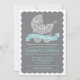 Um carrinho de bebê bonito do estilo do laço (pram/carrinho de criança) decorado com pássaros de bebê e redemoinhos das videiras termina este convite moderno do chá de fraldas. Muito doce e fácil personalizar com seu próprio texto. Ilustração original pelo pj_design. Verifique por favor minha loja para ver se há mais como esta.