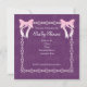 Personalize e personalize o convite com o PLdesign Cute e o adorável Purple É uma menina com calçados de bebê roxos e dois arcos em um quadro.