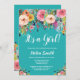É um convite para Chá de fraldas Teal Floral.Rosa. Chá de fraldas Garden Girl. Flores De Aquarela. Fundo do Teal Aqua Turquoise. Para mais personalização, clique no botão "Personalizar" e use a ferramenta design para modificar este modelo.