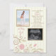 Apresente o bebê a caminho com este convite para chás de fraldas. Apresentar a futura mãe numa janela fotográfica e a imagem de ultrassom do bebê na outra.