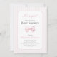 Bem-vinda à sua menina com este encantador convite "É uma Rapariga" com um arco cor-de-rosa suave e um esquema clássico de design. Perfeito para um tema de chá feminino e eterno, este convite adiciona um toque doce e gracioso à sua celebração.