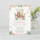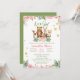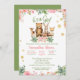 É um convite para chás de fraldas florais, cor-de-rosa e verde. Urso, veado, coelho e outros animais florestais adoráveis.