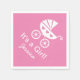 É um guardanapo de chá de fraldas feminino. Design neutro com carruagem de bebê fofo. Enrolador Adorável / carrinho de bebê com ilustração cardíaca. Faça seus próprios guardanapos com texto personalizável. Em rosa e outras cores, cinzas roxas amarelas, etc. Ótima ideia para a nova mãe, para ser mãe.