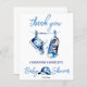É um bebê azul-menino calçado um boné simples e moderno cartões de agradecimentos de fonte casual de cor d'água. Cartões de agradecimentos chá de fraldas do bebê