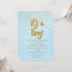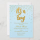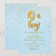 É UM MENINO Convite Azul Claro e Confetes Dourados.