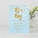 É UM MENINO Convite Azul Claro e Confetes Dourados