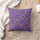 É uma almofada com um padrão floral brilhante num fundo roxo
