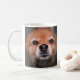 A cara do cão bonito, inquisidor em uma caneca de café.