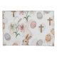 Celebrate the season of renewal with this delightful seamless Easter pattern featuring watercolor-style brown bunnies, pastel-decorated eggs, blooming lilies, and wooden Christian crosses. Set against a clean white background, each element is evenly spaced to create a festive, gentle design perfect for coloring pages, print-on-demand products, scrapbooking, and seasonal crafts. Ideal for mugs, apparel, stickers, planners, and digital downloads.