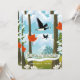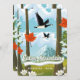 Eaton Mountain Skowhegan, Maine-Cartoon Landscape (Paisagem de Maine-Cartoon) com os Geese sobrevoando uma montanha e árvores.