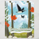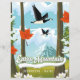 Eaton Mountain Skowhegan, Maine-Cartoon Landscape (Paisagem de Maine-Cartoon) com os Geese sobrevoando uma montanha e árvores.