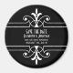 Rico simples e elegante Imã salve a data ornamentais em preto e branco com uma sofisticada fronteira florescente decorativa do estilo de arte. Fácil de personalizar, basta adicionar os detalhes do casamento nos campos de texto fornecidos. Clique em "Personalizar" para encontrar mais opções de personalização.
