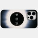 Imagem artística de um eclipse solar total em preto e branco datado de 8 de abril de 2024, mostrando o brilho brilhante da coroa solar radiando por trás da imagem bloqueada da lua de cheio.