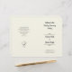 Modelo do programa de casamento de cera simples a dobrar ao meio após a compra. Pequenos embelezamentos, como divisores de linha para os nomes, e corações entrelaçados bonitos nas costas, dão a este programa um toque encantador. O estilo de fonte impresso casual é usado para a "ordem da cerimônia" e a "festa de casamento", assim como para a mensagem do casal no verso. O script em negrito é usado para o título e os nomes do casal.