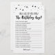 Adquira este jogo editável e desfrute de alta qualidade Como você conhece o cartão da garota de aniversário do seu evento? Este é um modelo de jogo, você pode mudar as perguntas como quiser! Design das estrelas negras e brancas.