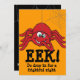 O partido do Dia das Bruxas do divertimento convida. Caracterizando uma grande aranha da preferencialmente. A parte externa de convida lê a EEK! Deixe cair dentro por uma noite tremenda. Partido interno de Spooktacular o Dia das Bruxas. Com personalização de seus nomes, detalhes, endereço e RSVP do partido. Ilustração e design excepcionalmente projetados da aranha do divertimento por Sarah Trett.