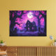 Sob um céu violeta assombroso, a lua de cheio lança seu brilho sobre uma casa vitoriana em decadência, suas janelas acesas com uma luz roxa do outro mundo. Árvores torcidas sobram, suas ramificações esqueletais pingavam com sombra, enquanto inclinavam lápides apontavam para a história sombria da casa. A paleta colorida esquisita transforma a cena em um pesadelo surreal, perfeito para amantes do horror gótico, calafrios de Halloween e arte da fantasia escura. Esta peça irradia tanto a beleza quanto o pavor, fazer uma declaração impressionante para qualquer parede.