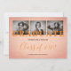 Cartão de Convite de Formatura com Efeito de Tecido Coral Rústico e 3 Fotos.