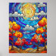 Efeito de vidro manchado; ilustração das nuvens de tempestade e das árvores de outono. É uma pintura original com nuvens e árvores coloridas e parece um loop. Pode ser adquirido como um poster físico ou poster digital baixado em alta resolução para o impressão.