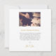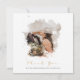 Um cartões de agradecimentos de casamento moderno apresenta uma foto romântica enquadrada com um efeito de camada de água suave, complementado por "Obrigado" em uma elegante escrita em estilo ouro para uma aparência refinada e sincera. O layout branco e limpo coloca o foco no casal alegre, com espaço abaixo para uma mensagem personalizada e nomes expressando apreciação. Este design combina a tipografia contemporânea com lavagens artísticas do estilo aquarela, fazer que seja uma lembrança memorável para amigos e familiares.