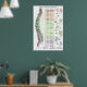 A poster quiroprática enumera os efeitos da subluxação da coluna nas áreas do corpo e os possíveis sintomas associados. Cor codificada pelo nível da coluna. Ilustração da inervação nervosa dos órgãos. Dimensionado para gráfico de 24" X 36".