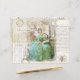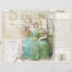 Linda efemia colidida da dama do século 18 sentada com um livro sobre o fundo da caligrafia francesa, a Torre Eiffel, e uma abelha (símbolo da França). O verso está cortado para que a figura pareça maior.