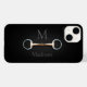 Para equestrianos e amantes de cavalos, esta capa de telefone personalizada tem uma ilustração trompe l'oeil de um pedaço de fenda de bico de cobre entre seu monograma e nome.