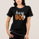 A design gráfica moderna e fofa do Halloween "Ei Boo" apresenta texto em letras laranja e brancas com um pequeno sotaque fantasma. Disponível em vários estilos e tamanhos para toda a família.