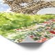 Esta trabalho de arte de aquarela captura lindamente a icônica Torre Eiffel, torcendo acima de uma robusta cena de rua parisiense. As pinceladas suaves e fluidas evocam uma atmosfera leve e arejada, com árvores verdes vibrantes e paralisações coloridas no mercado que estão em primeiro plano. A estrutura detalhada da torre contrasta com a representação divertida e impressionista da multidão, criando um encantador equilíbrio entre precisão arquitetônica e capricho artístico. O céu azul e as nuvens espalhadas acrescentam um pano de fundo sereno, melhorando o encanto romântico da cena.
