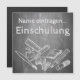 Einladungskarte zur Einschulung mit Lehrmaterialien im Kreidetafelstil. Sowohl die Texte auf der Vorder- und Rückseite, als auch der Name sind nur ein Beispiel und können individuell dem entsprechenden angepasst werden.