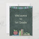 O cumprimento jovial a Einschulung em Schultafel ao descolagem no primeiro curso escolar - com perfeição