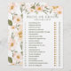 Um design de jogo de chá de noiva floral cor de rosa gardenia elegante e sofisticado, perfeito para a noiva country. Nosso design apresenta arranjos florais abstratos delicados de flores cor de rosa, gardenias florescendo e folhagens artísticas para criar este arranjo floral elegante. "Noiva ou Noivo - Adivinhe quem disse" é exibido ao longo da parte superior. Todas as flores são ilustrações originais desenhadas à mão por Moodthology.