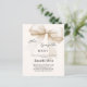 Um bege macio, fundo colorido creme, decorado com um arco. Personalize e adicione um nome e detalhes da parte. Texto: Ela é casando. 1 folha = 1 convite impresso de borda a borda.
