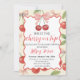Adicione a cereja no topo à sua celebração com este convite adorável e divertido! Com detalhes encantadores de cereja e um design brilhante e alegre, este convite é perfeito para aniversários, chás de bebê, chás de noiva ou qualquer ocasião doce digna de celebração. Personalize facilmente todos os detalhes para torná-lo exclusivamente seu e defina o tom para uma festa que seja fofa, divertida e cheia de charme!