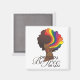 Este ímã é da minha linha Hers e Hers. É uma imagem de uma mulher afro-americana. Ela tem cabelo natural, com listras arco-íris. As faixas do arco-íris representam a bandeira LGBT.