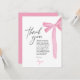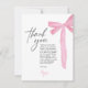 Expresse sua gratidão com o modelo de cartão de agradecimento "Ela Está Amarrando o Nó" Arco Rosa Festa de Noivado! Com minha ilustração de arco de fita chic desenhada à mão e texto personalizável, este cartão elegante é a maneira perfeita de agradecer aos seus convidados por celebrar sua festa de noivado.
