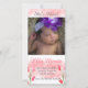 um anúncio de nascimento com tulipas e pincéis leves de rosa.