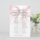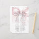 Esse Jogo De Chá de panela De Estilo De Coquete Giro E Bonito - Ela Iria Preferencialmente. Adicione uma atividade divertida ao seu chá de panela onde os convidados adivinham qual opção a futura noiva escolheria para uma série de perguntas divertidas "Ela Preferencialmente". É uma maneira reluzente de despertar conversa e risos enquanto a celebra. O design apresenta um arco cor-de-rosa pincelado e sobredimensionado que rouba o holofote, emparelhado com a frase "Ela é casando!" em uma combinação chic de script manuscrito preto e fontes serif clássicas. A tipografia melhora o charme de coquetes, combinando uma escrita graciosa com texto de serifa de eterno para uma aparência feminina e na moda. Totalmente personalizável, você pode editar as perguntas, as cores da fonte e o plano de fundo para corresponder ao tema do chá de panela. Esta atividade adiciona um toque doce e brincalhão a qualquer celebração.