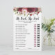 Faça seu chá de panela lembrar com este elegante e engraçado jogo de festas de noivas. Apresentando uma bela burgundy & blush watercolor florals, e modelo de texto que pode ser facilmente personalizado.