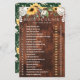 Um design de jogo de chá de panela e chic perfeito para a futura noiva do estilo country. Nosso design apresenta nossos ouros de aquarela pintados manualmente, girassóis amarelos, florais brancos e verde natural, arranjados para criar este elegante arranjo de país. "Noiva ou Alteza Adivinha quem disse isso" é exibido no topo. Os amarelos do ouro, cremes e paleta de cores verdes da floresta criam um elegante olhar rústico no estilo do país. Amarelo Aquarela aquarela floral girassol e verde enquadram o topo. O verso apresenta o nosso padrão de girassol amarelo de aquarela complementar. Todos os florais são obras de arte feitas à mão pela Moodthology.