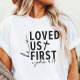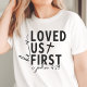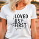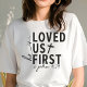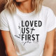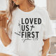 Celebre sua fé com nossa camiseta Ele Nos Amou Primeiro. Com a poderosa mensagem "Ele Nos Amou Primeiro" de 1 João 4:19, este design é perfeito para quem deseja expressar sua crença no amor inabalável de Jesus. Ideal para uso casual ou como um presente atencioso para amigos e familiares que prezam sua fé.