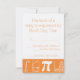Esta placa RSVP engraçada e geeky apresenta um fundo laranja brilhante e um gráfico grande em branco na frente. Uma borda laranja ao longo da borda inferior da placa com um padrão matemático de integrais brancos, Pi, gráficos e espirais Fibonacci decoram a parte de trás com algum texto de amostra no lugar acima que pode ser personalizado para ajustado de suas necessidades. Verifique os outros produtos no conjunto It Adds Up in Orange (Adição de ti) para criar uma pesquisa verdadeiramente coordenada para o seu evento.