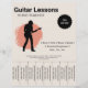 A flyer with tear off strips and an illustration of a silhouette of a guitarist playing an electric guitar on vintage pink color stain. Perfect for activities such as guitar lessons or teacher!