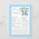 Padrão de estrelas brancas azuis, conselho de bebê elefante e cartão de previsão. Adicione suas previsões sobre o novo bebê e deixe seus melhores desejos.